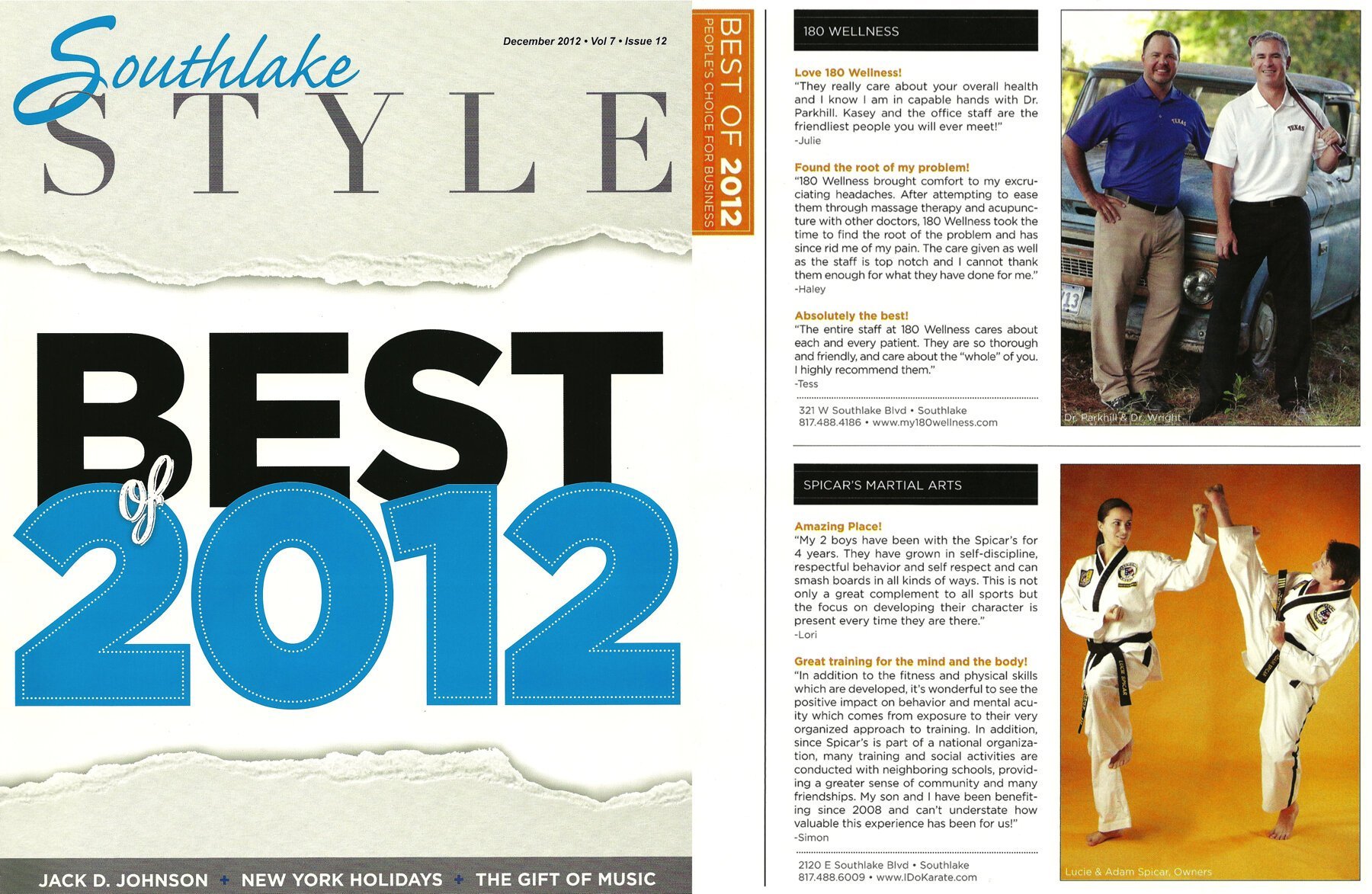 We are very proud to be featured in the Best of 2012 issue of Southlake Style magazine, yet again! Thank you all for your continued support to make us the best martial arts school in the area!