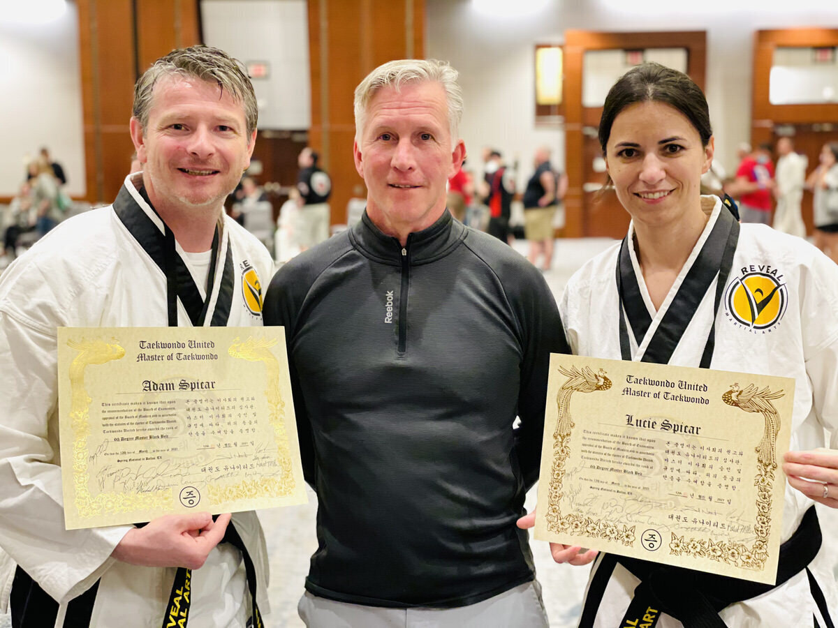 We are incredibly proud to congratulate the founders of Reveal Martial Arts, Adam and Lucie Spicar, on successfully passing their Taekwondo Master testing, and achieving the rank of 6th Degree Master Black Belt.